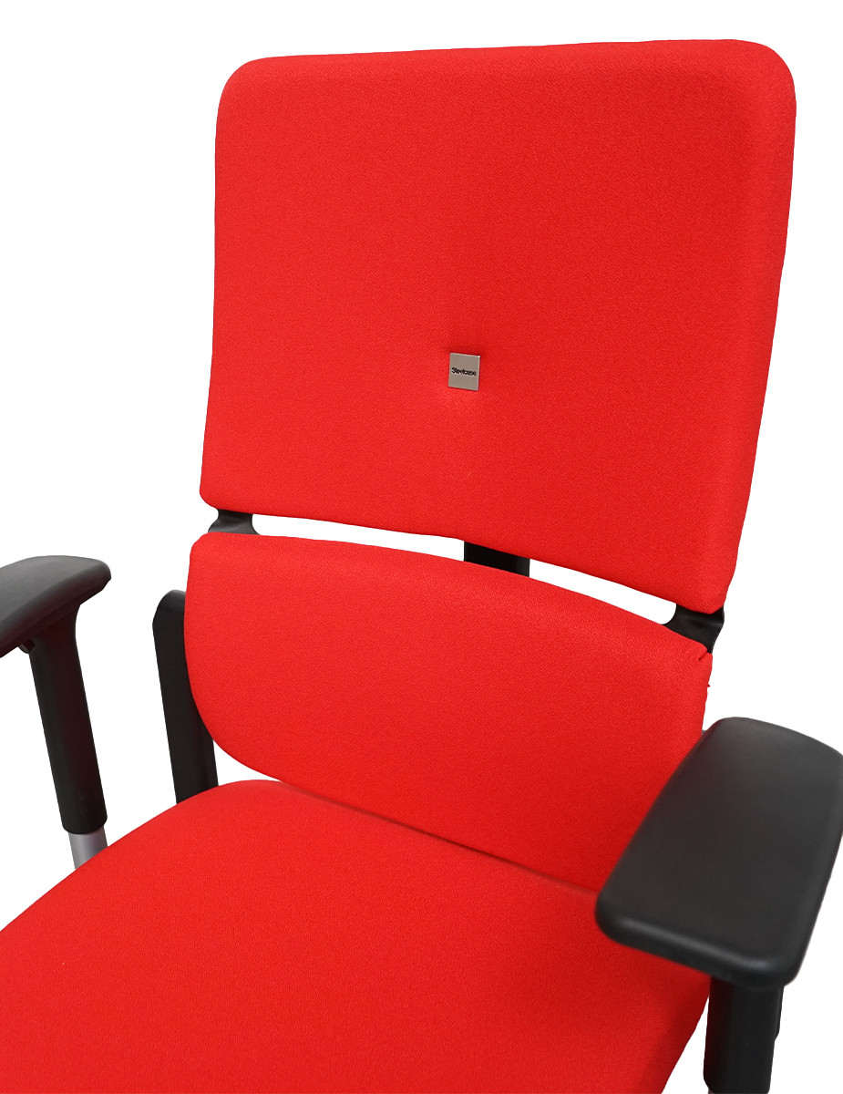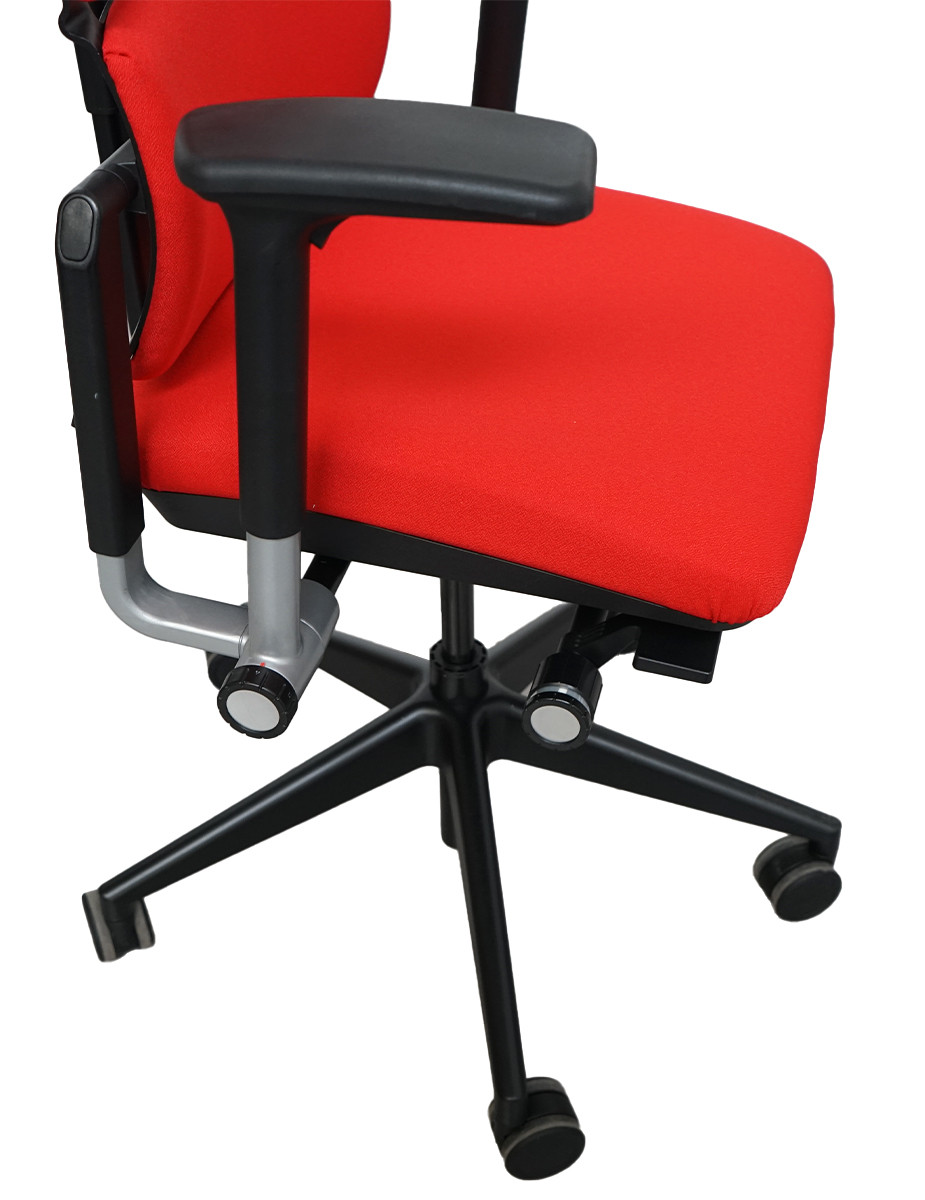 El asiento regulable en altura (42–56 cm) y con mecanismo trasla permite ajustar la profundidad (43–50 cm) para adaptarse a distintas complexiones. El respaldo de 62 cm de alto, regulable en altura y con basculación ajustable en tensión, trabaja junto al mecanismo Sincro de 4 posiciones para acompañar el movimiento natural del cuerpo.