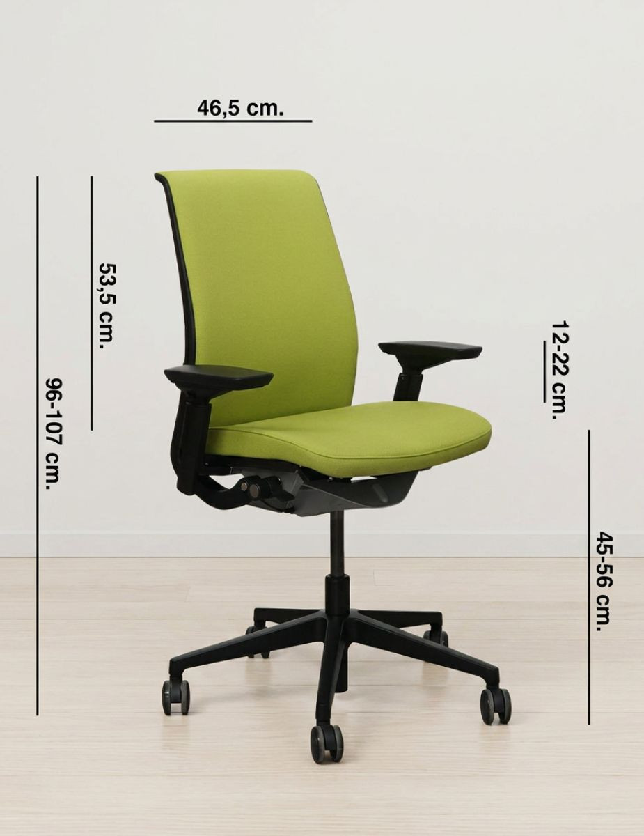 La Silla Ergonómica Oficina de Tela Think V2 de Steelcase es una referencia en ergonomía inteligente y diseño funcional para espacios de trabajo exigentes. Con unas dimensiones totales de 96 a 107 cm de alto, 67 cm de ancho y 69 cm de fondo, se adapta con precisión a diferentes usuarios y configuraciones de puesto.