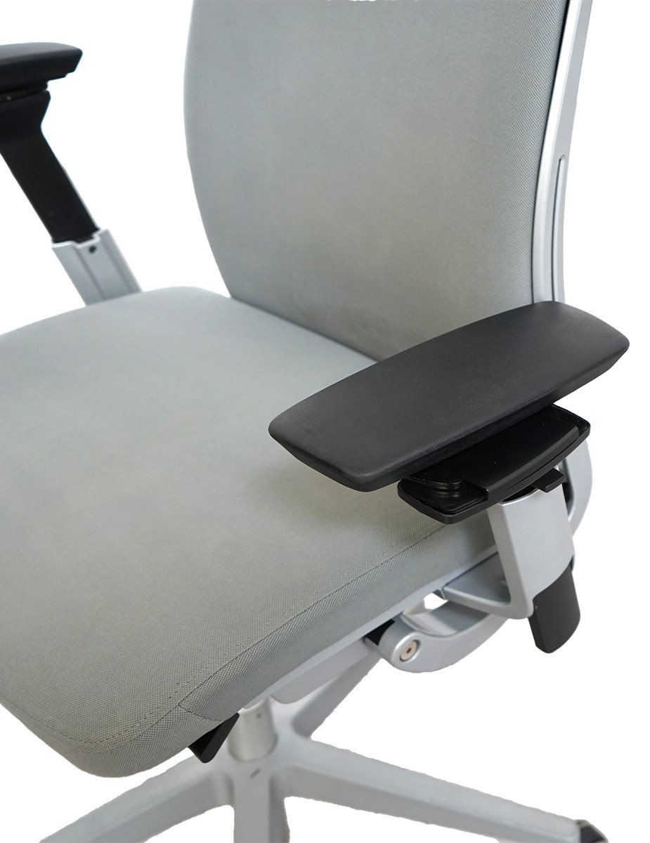 Incluye mecanismo Sincro con diferentes posiciones y sistema basculante que acompaña el movimiento natural del cuerpo, favoreciendo una postura activa durante toda la jornada. Sus brazos 3D (15,5–24 cm de altura, ancho regulable de 10–13,5 cm) permiten ajustes precisos en altura, anchura y profundidad.