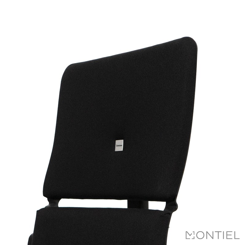 Tanto su asiento como su respaldo están tapizados en tela o símil piel de acabado personalizable a elegir, y además ambos son regulables en altura.