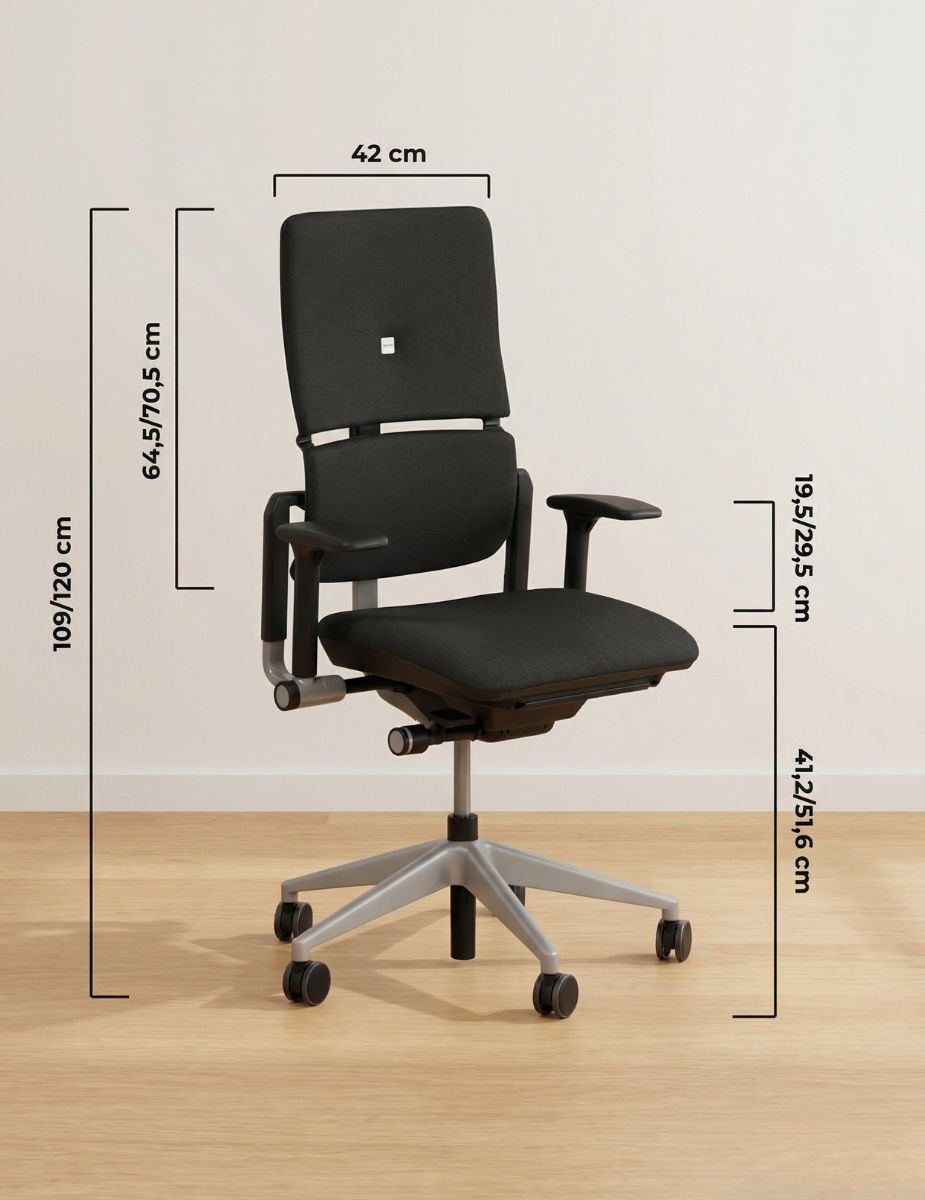 Dimensiones Asiento - Alto: 41,2-51,6 cm. / Ancho: 46 cm. / Fondo: 39,5-51,6 cm. /