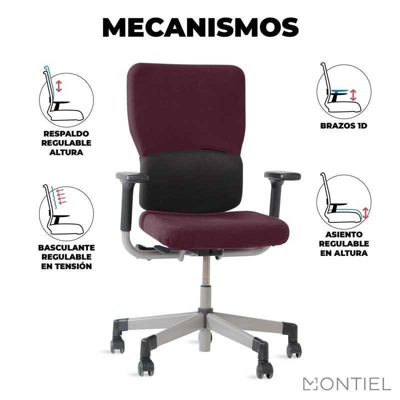 Además, el respaldo podrás elegirlo con lumbar negro o monocolor, e incluye Mecanismo Basculante, gracias al cual podrás reclinarte.