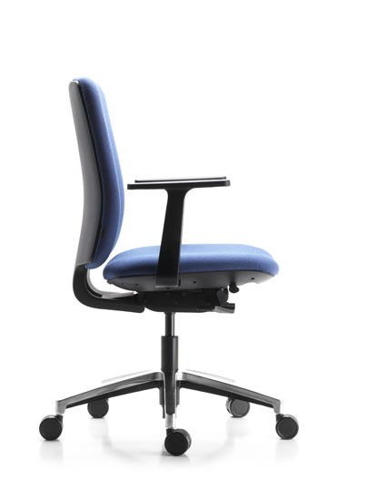 Tanto su asiento como su respaldo están tapizados en tela o símil piel de acabado a elegir. El respaldo es alto, e incorpora refuerzo lumbar, y un Mecanismo Sincronizado Autopesante, que te permitirá ajustar la inclinación del mismo y bloquearlo en diferentes posiciones, asegurando un acompañamiento óptimo durante el movimiento de reclinación y adaptándose automáticamente al peso del usuario.