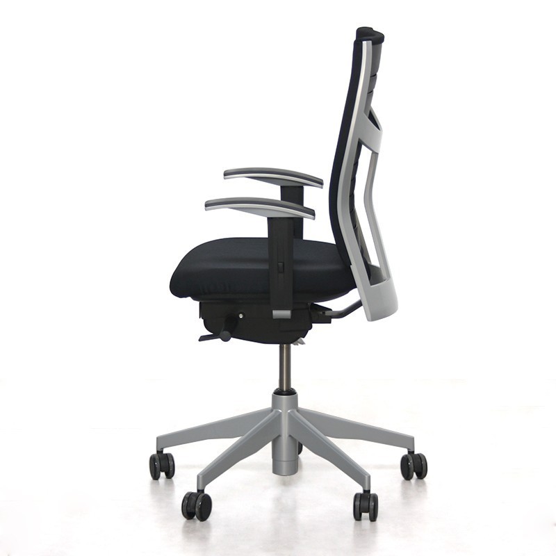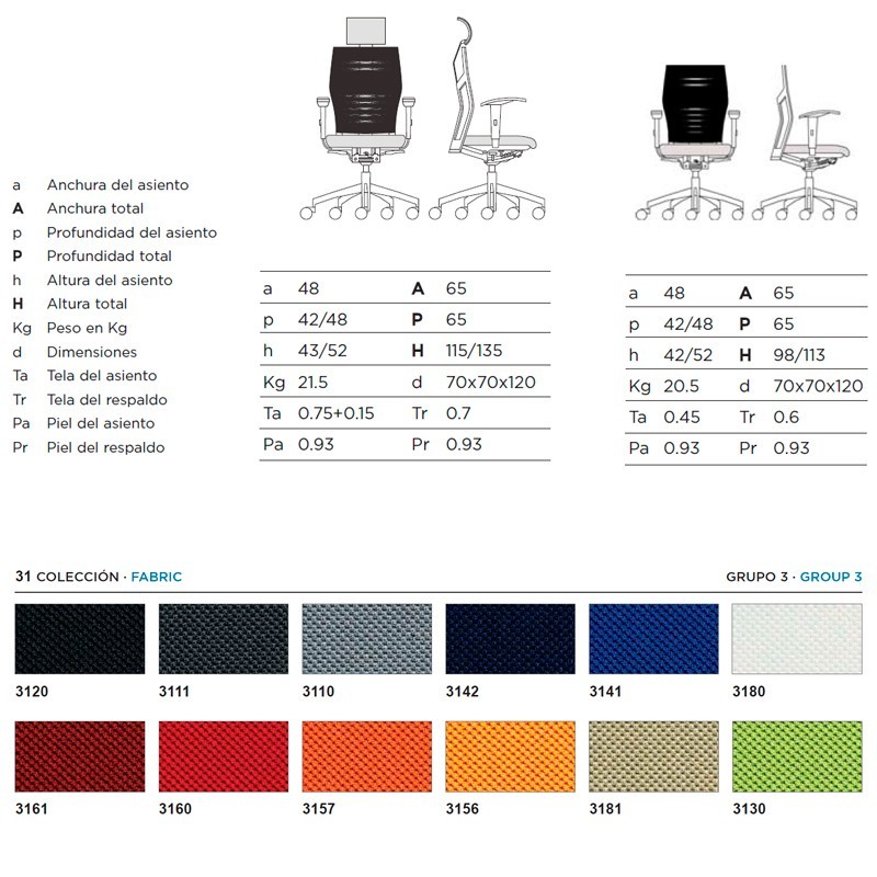 La silla Zas se encuentra tapizada en tela color a elegir, con el respaldo en polipropileno negro, malla negra o tapizado, además incluye brazo regulable en altura o en 2 dimensiones.