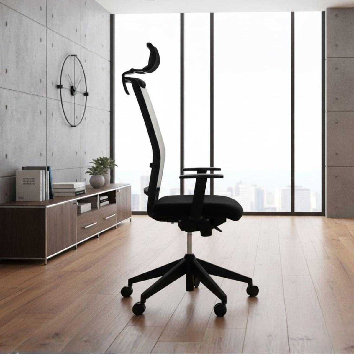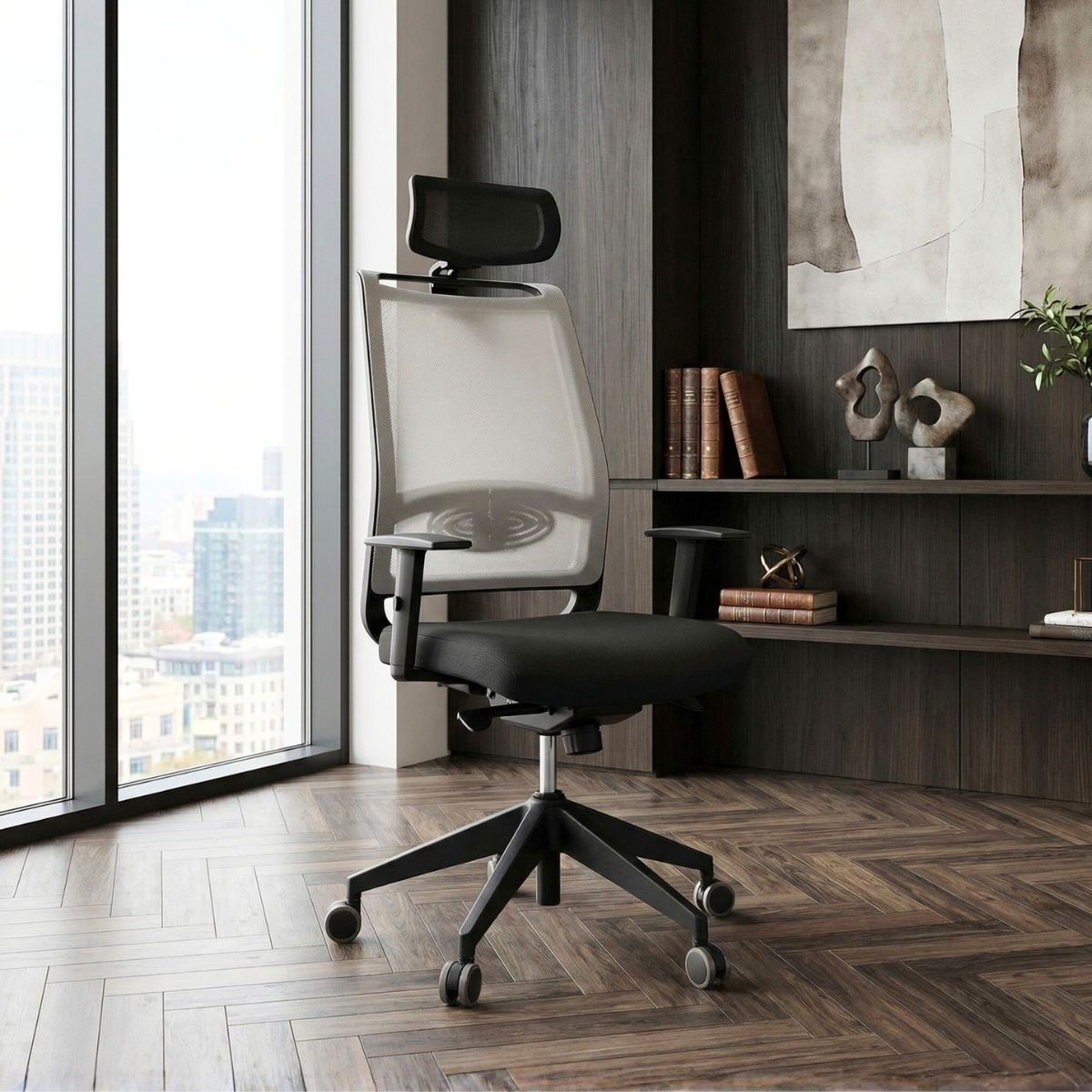 El asiento es regulable en altura, adaptándose a las necesidades individuales, mientras que el refuerzo lumbar regulable asegura un soporte adecuado para la espalda baja. Los brazos 1D ofrecen ajuste en una dirección, brindando flexibilidad adicional para mayor comodidad. Esta silla es perfecta para quienes buscan una opción ergonómica que combine estilo y funcionalidad.