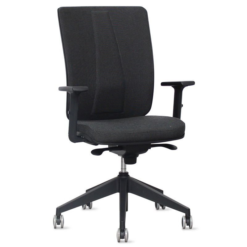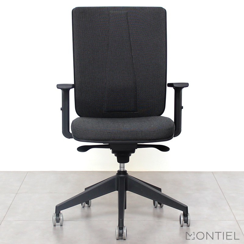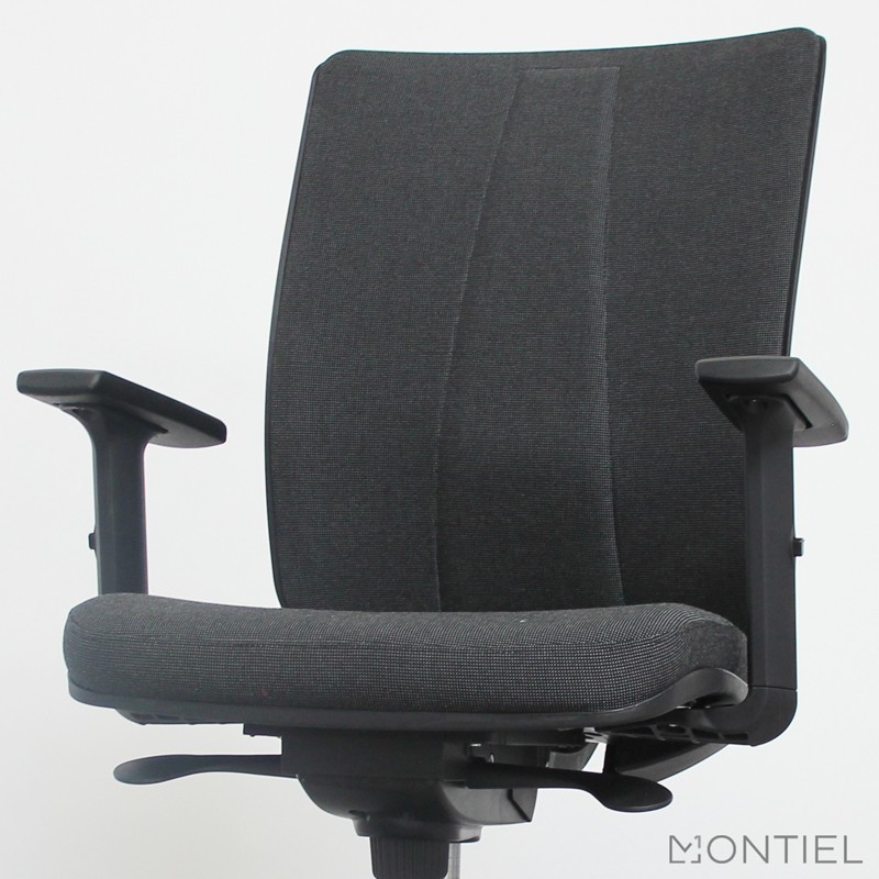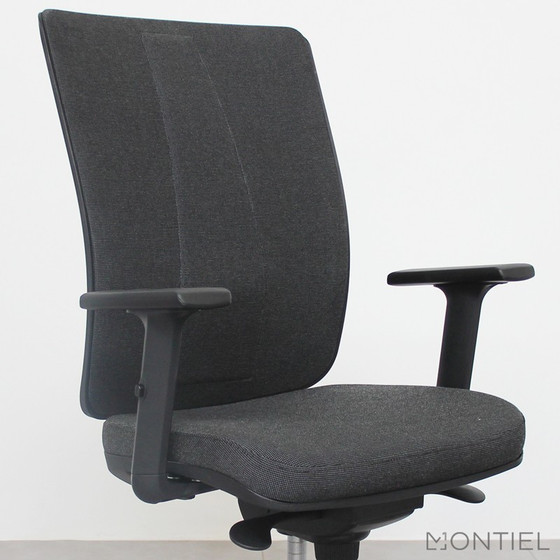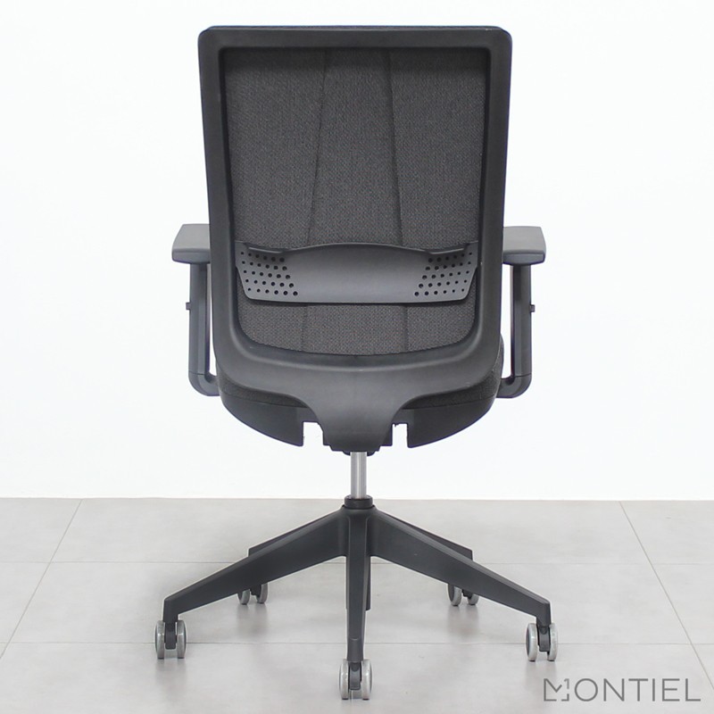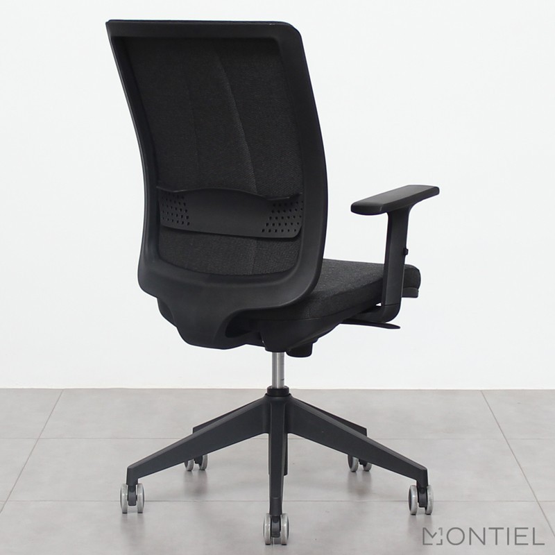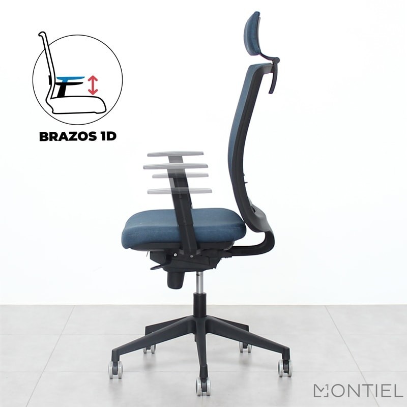 Sus brazos están fabricados en poliamida negra, y son regulables en altura (1D).