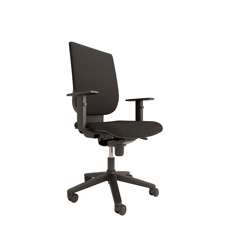 Sus brazos son de polipropileno inyectado de color negro, y son 1D (regulables en altura).
