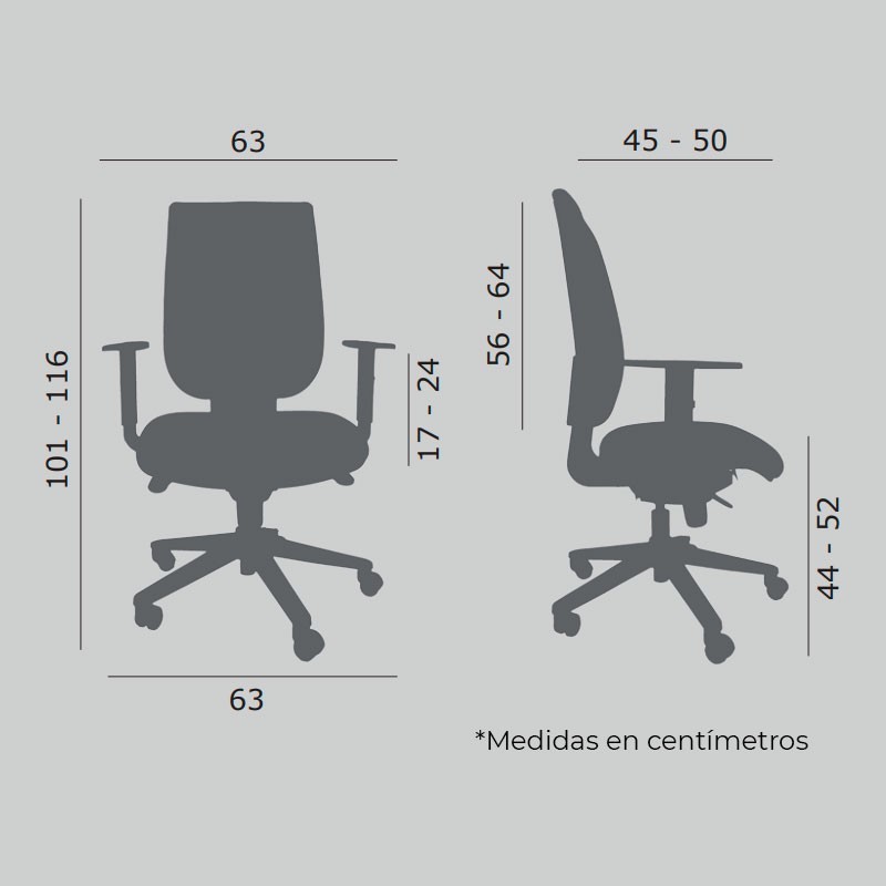 Dimensiones - Alto: 101-116 cm. / Ancho: 63 cm. / Fondo: 45-50 cm. /