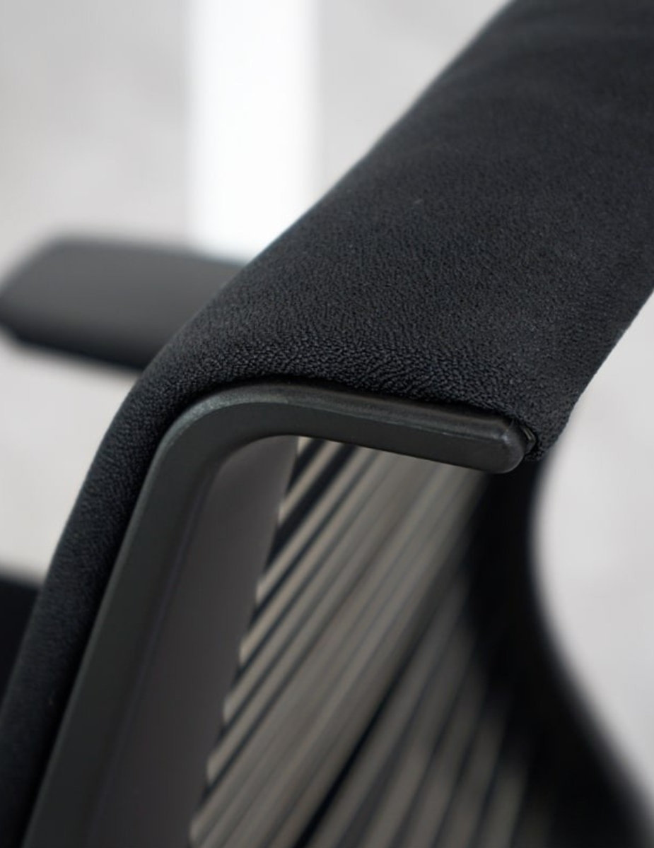 La serie de sillas de oficina operativas Think está fabricada con respaldo tapizado en tela con posibilidad de color a elegir, adaptándose perfectamente a la posición del usuario.