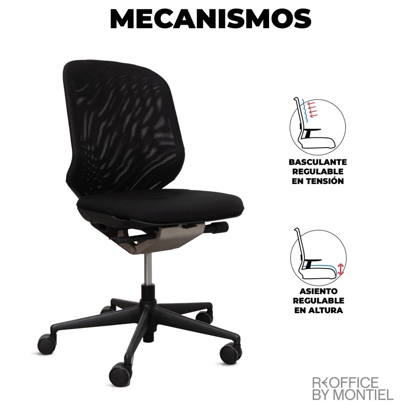Sin brazos, este diseño minimalista y versátil se adapta a una variedad de entornos, desde escritorios individuales hasta espacios compartidos como call centers y recepciones.