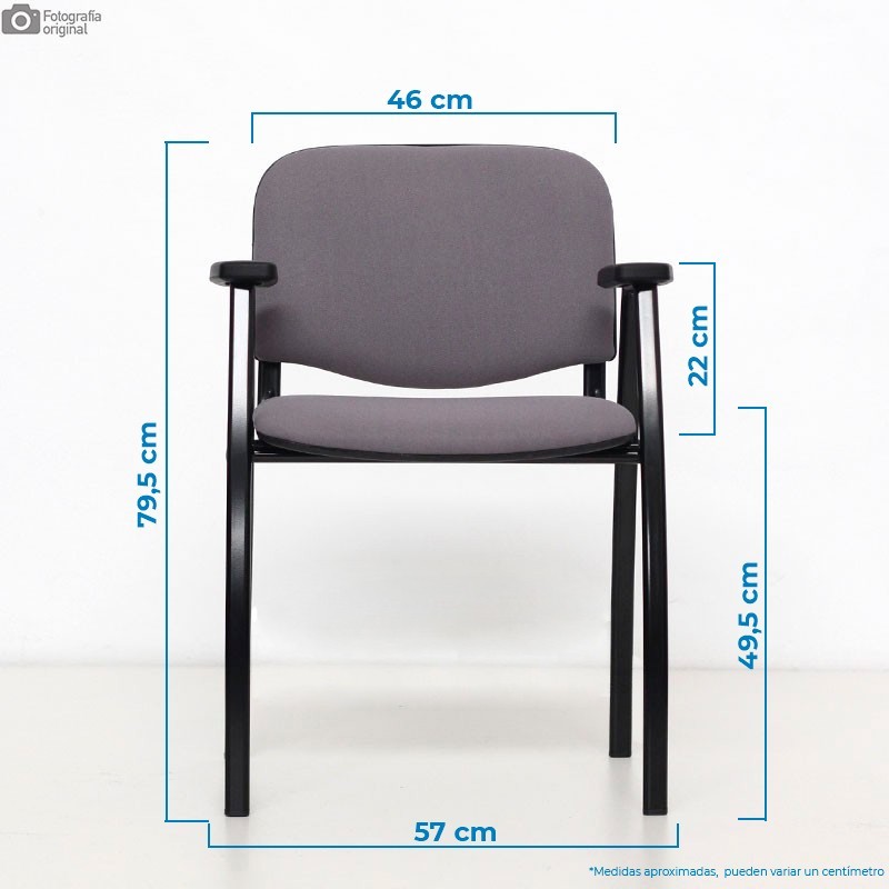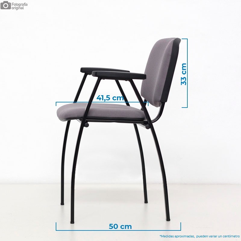 Su resistente estructura de 4 patas está fabricada de acero, el cual está pintado en epoxi negro o gris, según prefieras. Además, sus brazos fijos son del mismo material y acabado.