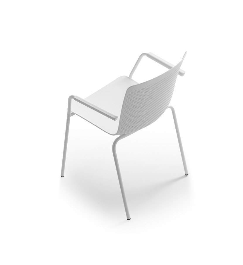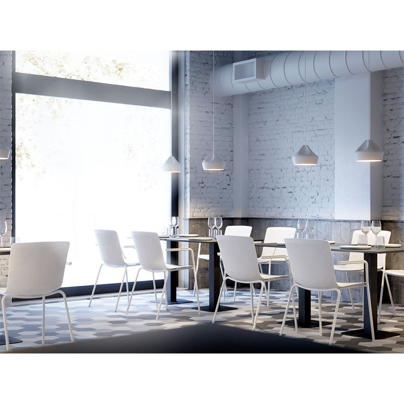 Glove es apilable (hasta 5 unidades), lo que hace de ella una silla aún más polivalente. Además, en la parte inferior del asiento incluye unos topes, que protegen a la silla en el apilado.