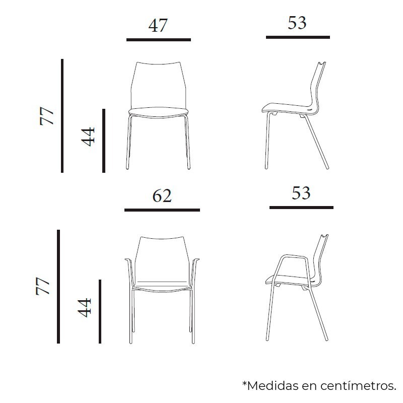 Dimensiones con Brazos - Alto: 77 cm. / Ancho: 62 cm. / Fondo: 53 cm. /