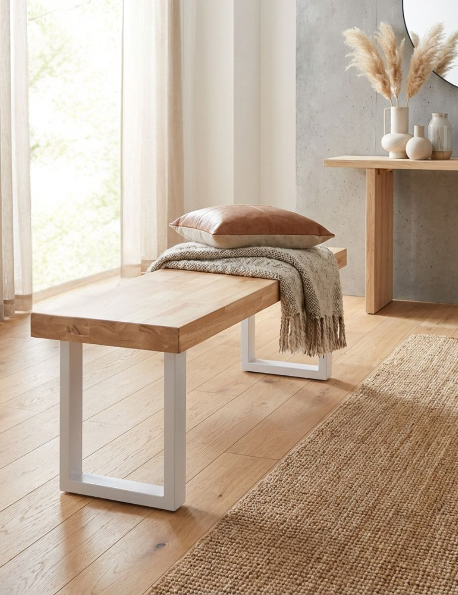 El Banco Asiento en Roble 47x120 cm. Loft de Adec es una pieza versátil y resistente que combina diseño industrial y calidez natural. Con unas dimensiones totales de 47 cm de alto, 120 cm de ancho y 34 cm de fondo, ofrece un formato cómodo y funcional para comedor, recibidor o espacios contract.