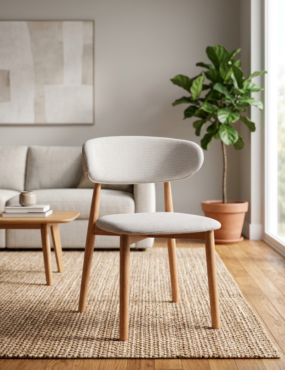 La Silla de Comedor Vera de Adec es una opción perfecta para quienes buscan calidez, diseño y confort en su espacio. Su combinación de estructura en madera maciza color natural con diferentes opciones de tapizado la convierte en una pieza versátil, ideal para ambientes acogedores y actuales.