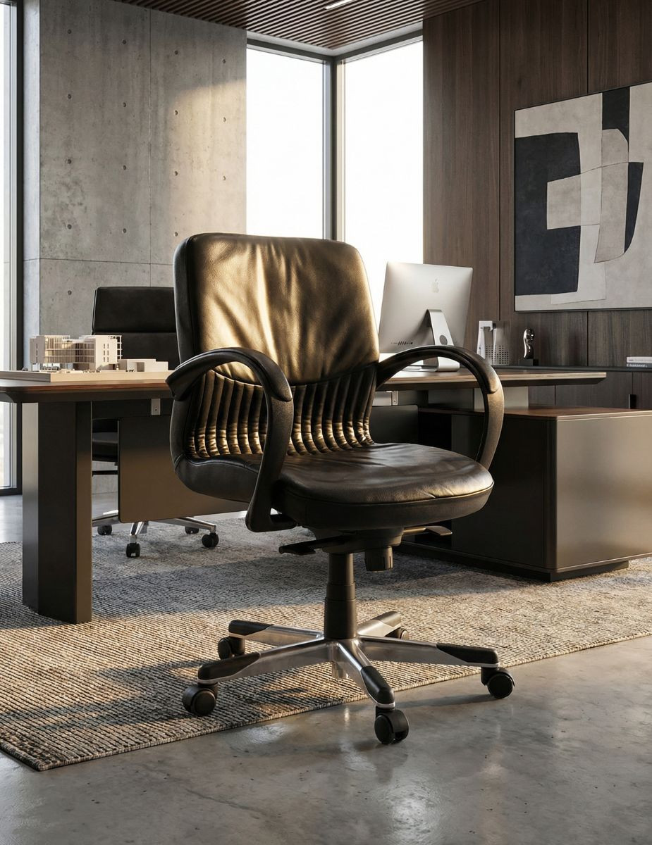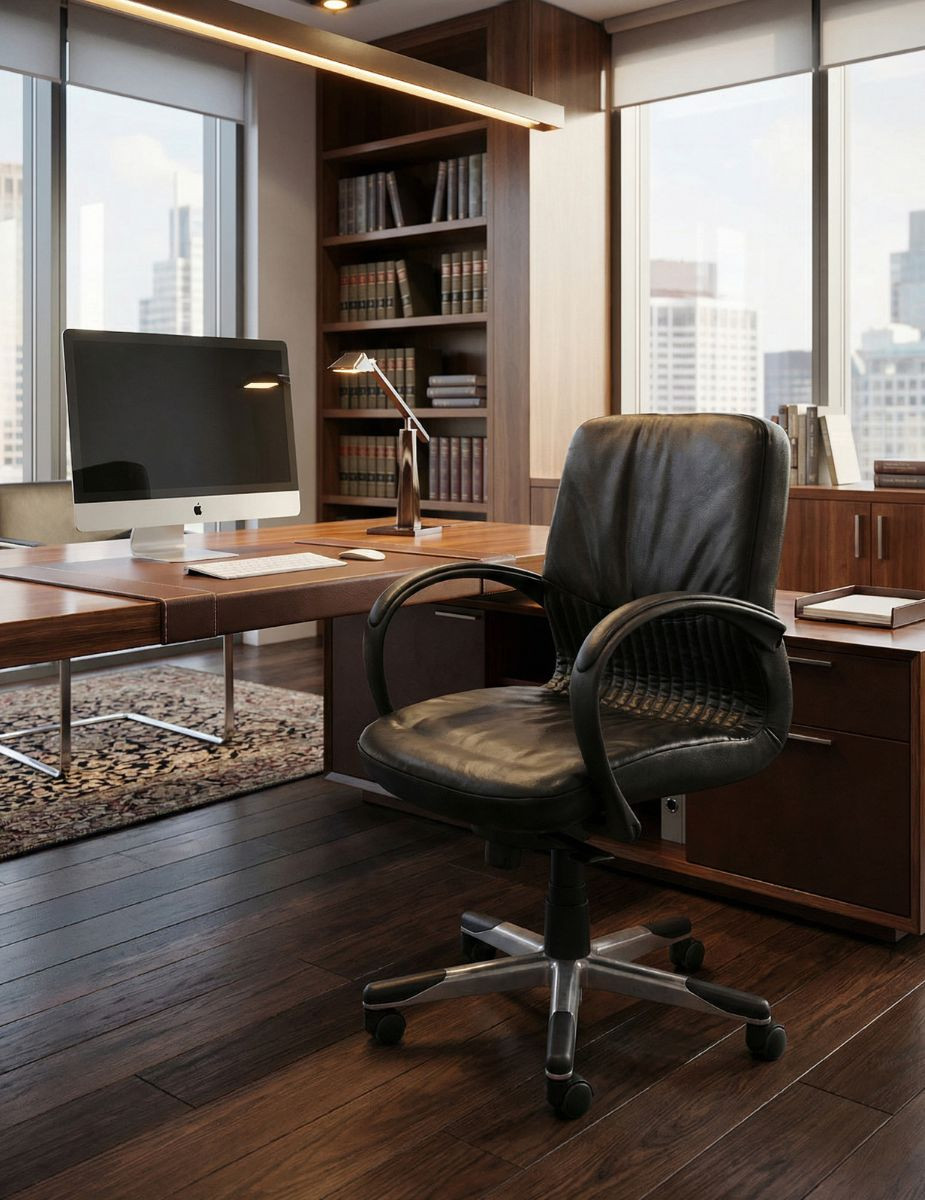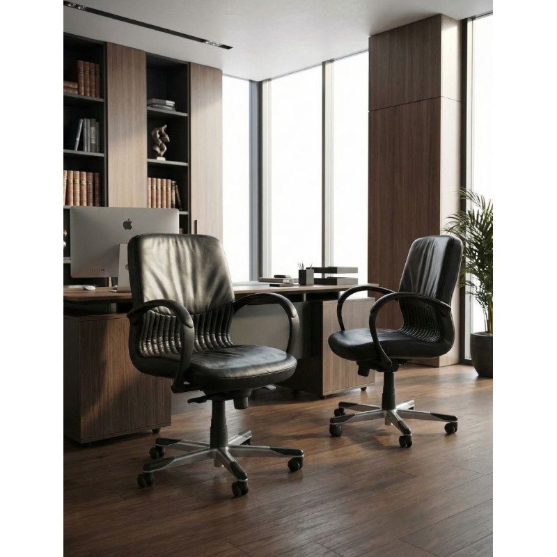 Esta silla de oficina combina elegancia, comodidad y una construcción robusta pensada para el día a día profesional. Su base giratoria de aluminio con puntas de polipropileno garantiza estabilidad y un movimiento fluido, mientras que el asiento y respaldo tapizados en piel negra ofrecen una experiencia premium desde el primer uso.