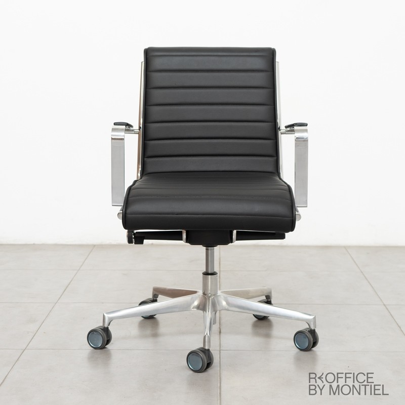 Su base giratoria con 5 radios es de aluminio pulido y muy resistente. Podrás elegir su respaldo entre alto y medio.