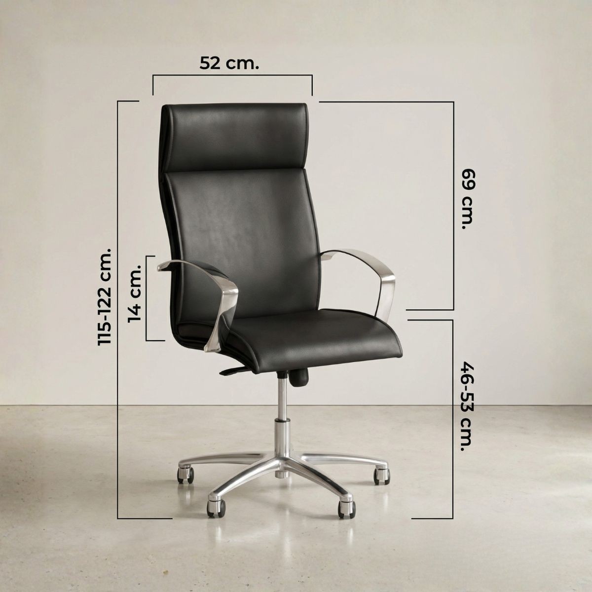 Dimensiones Respaldo alto - Alto: 115-122 cm. / Ancho: 63 cm. / Fondo: 67 cm. /