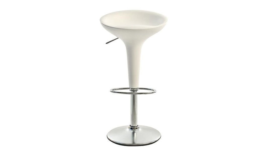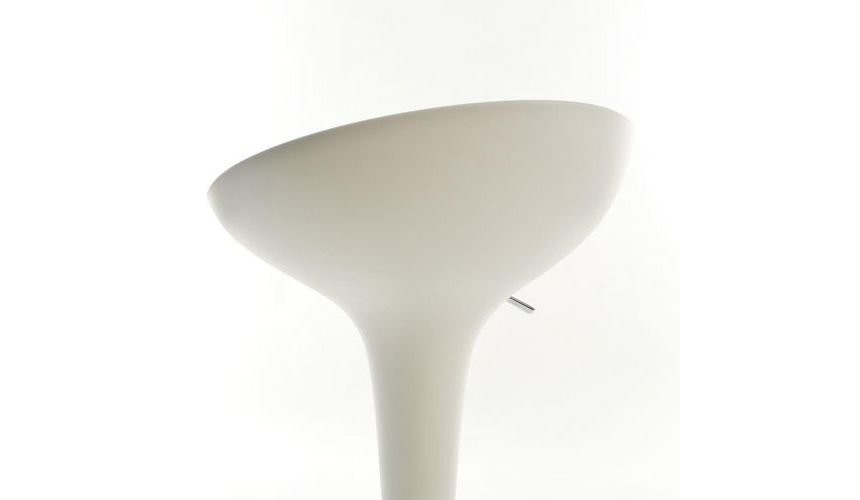 El taburete Bombo de altura regulable de Magis destaca por su diseño y funcionalidad. Este taburete de bar se compone de un asiento fabricado en plástico ABS y un pie y apoyapiés de acero cromado. El asiento del taburete Bombo de Magis se puede girar 360° y la altura se puede regular desde 50 cm a 74 cm mediante un mecanismo neumático con pistón de gas. Este elegante taburete mide 44 cm de ancho, 85 cm de alto y 37 cm de profundidad. Además, este taburete dispone de un pequeño respaldo para que sea todavía más cómodo.